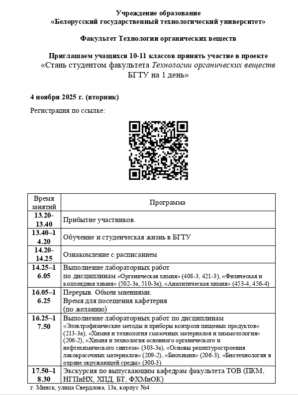 «Стань студентом факультета Технологии органических веществ БГТУ на 1 день»