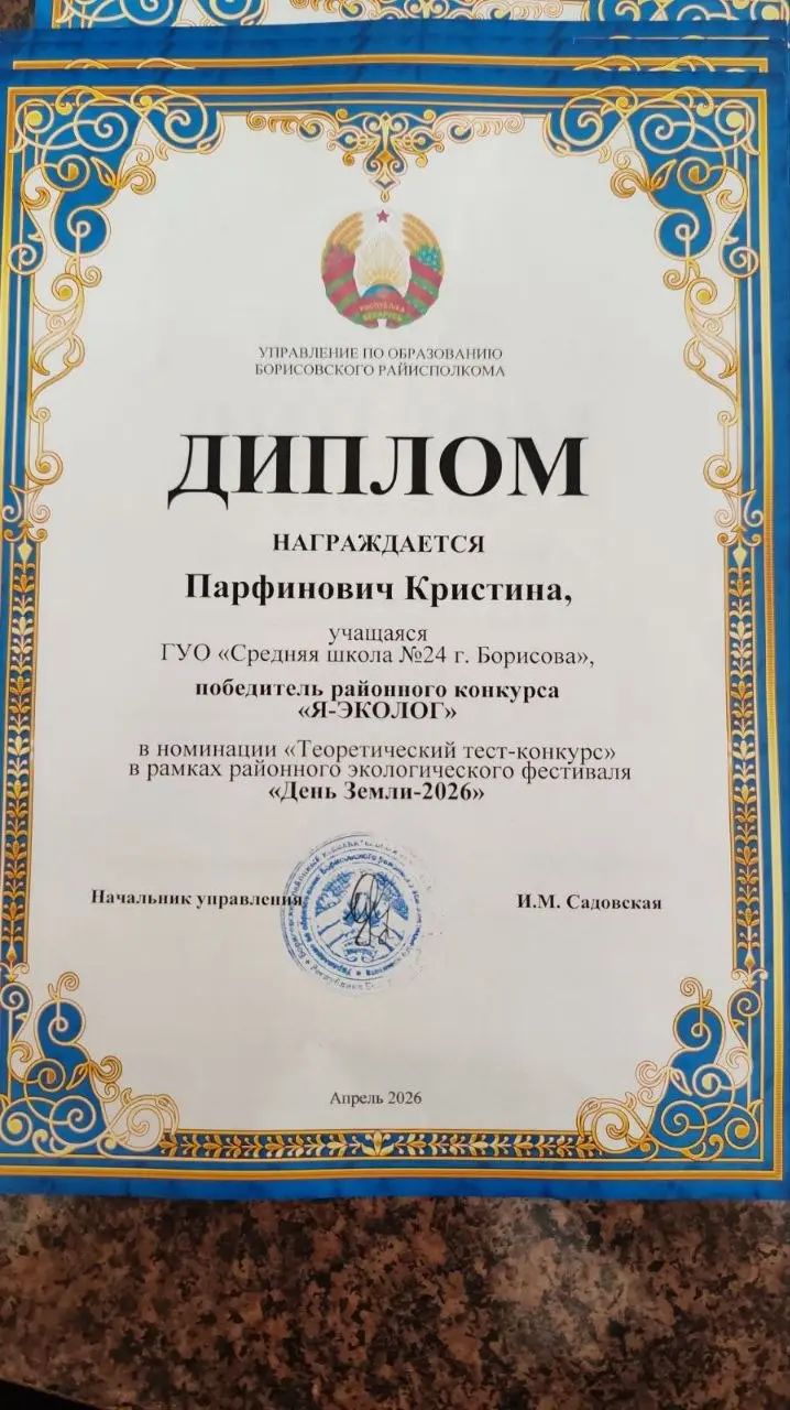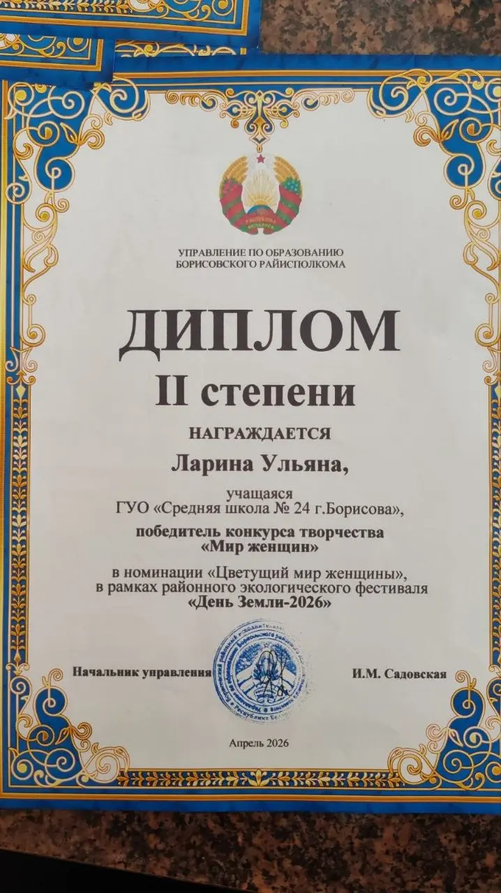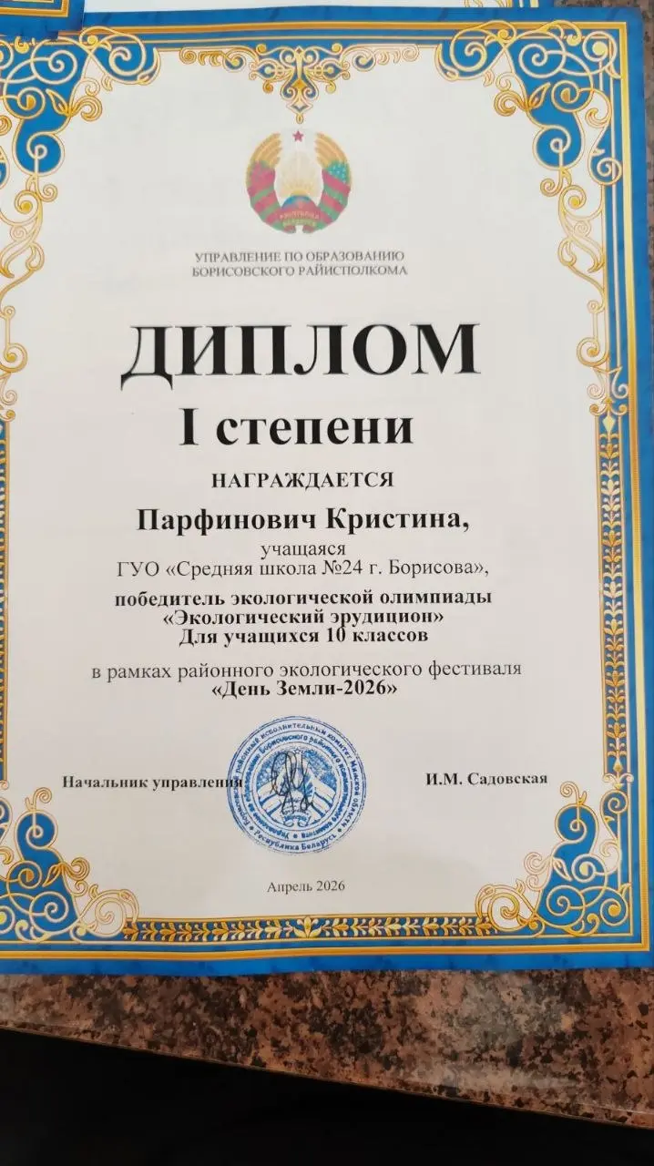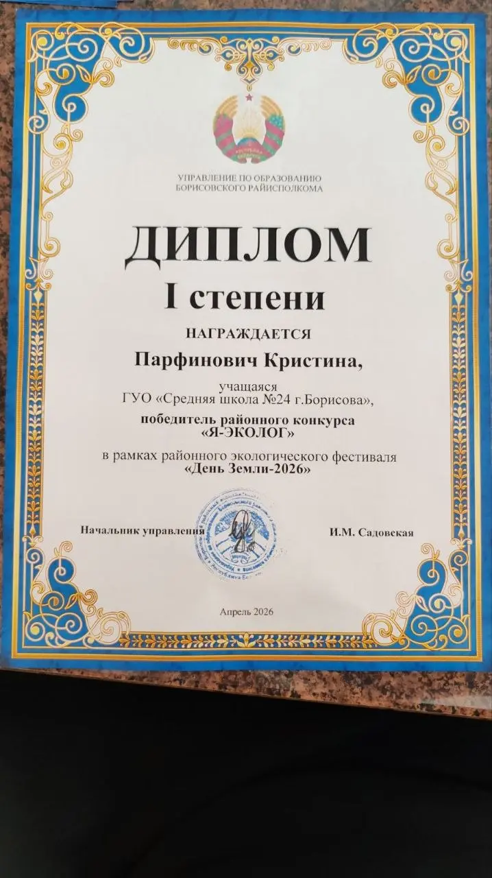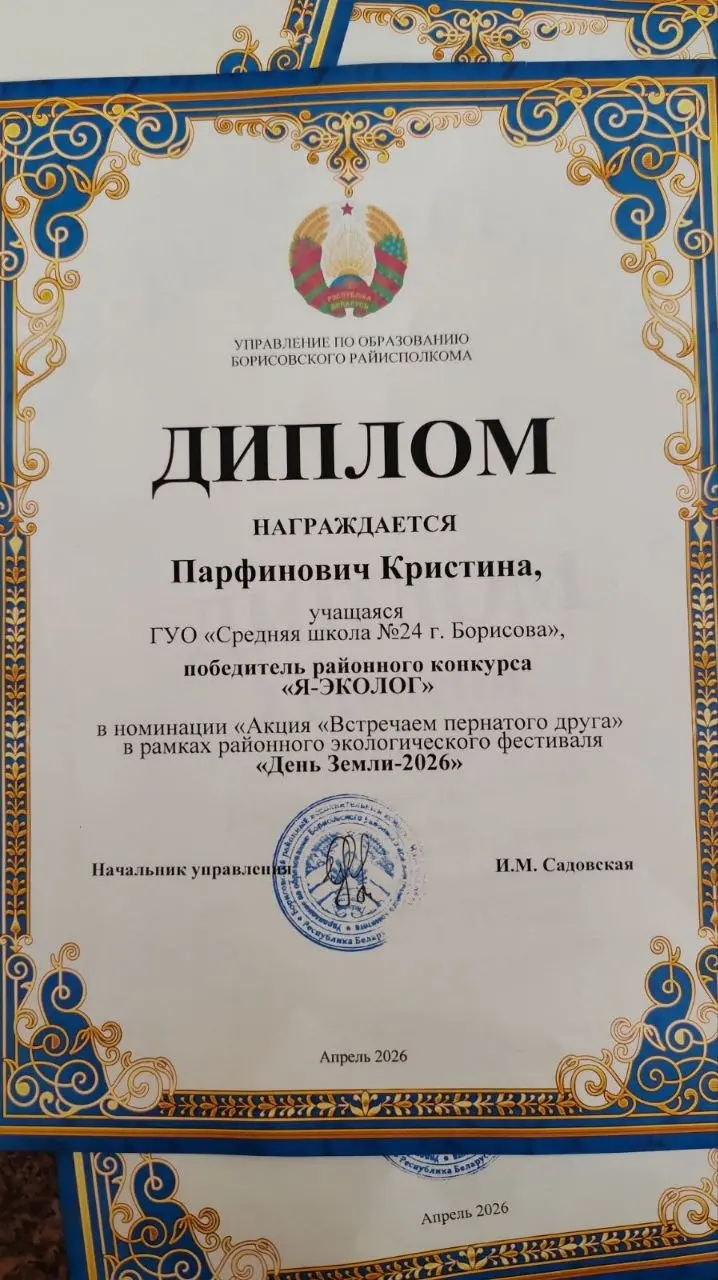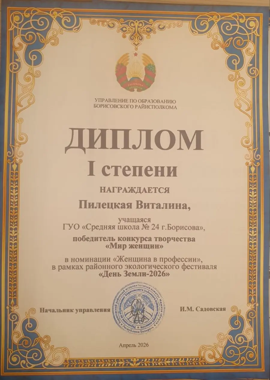 Дипломами 1 степени награждены Пилецкая Виталина" (руководитель Неверовская Инесса Алимовна), Парфенович Кристина (руководитель Лукашева Наталья Николаевна), Диплом 2 степени награждена Ларина Ульяна (руководитель Лукашева Наталья Николаевна)