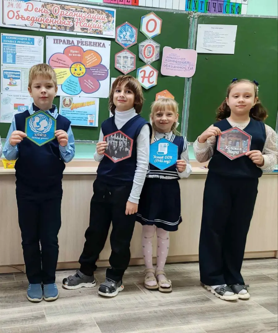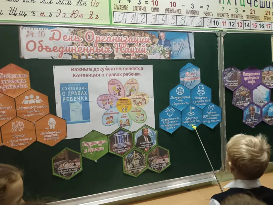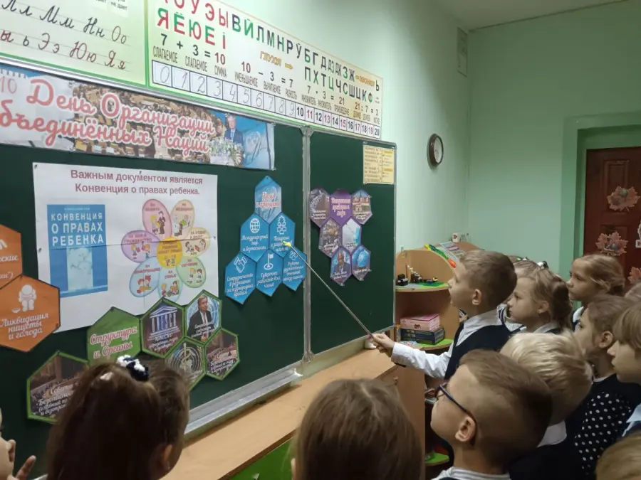 -На часе общения ребята 3 А класса узнали, что Организация Объединенных наций была создана сразу после Второй мировой войны. Страны-участники ООН обсуждают проблемы и решают вопросы, которые касаются их всех. Главная цель - поддержание мира и безопасности во всем мире. Важным документом, принятым Организацией Объединенных наций является Конвенция о правах ребёнка. Наша страна тоже является членом ООН.