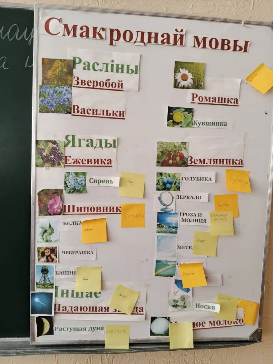 Тут жа пачалася акцыя "Смак роднай мовы", якая ўключае ў сябе пару дзясяткаў вельмі прыгожых слоў беларускай мовы, якія вучні павінны перакласці з рускай мовы. Да слова дадаецца малюнак для больш цэласнага ўспрымання, калі яго не ведае вучань.