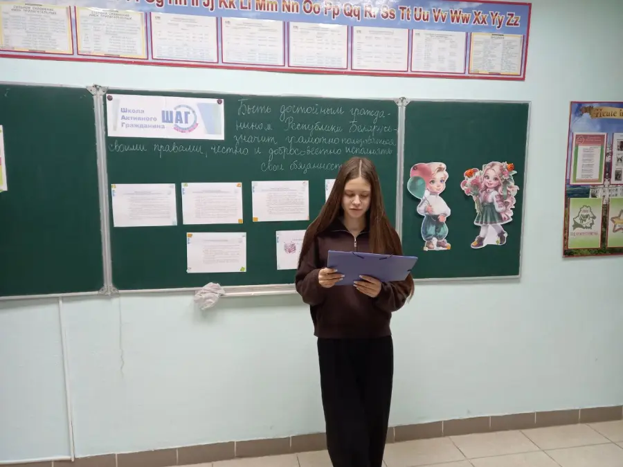 27.11 в 9б классе в рамках информационно-образовательного проекта ШАГ состоялось занятие "Быть достойным гражданином Республики Беларусь - значит грамотно пользоваться своими правами честно и добросовестно исполнять свои обязанности".
