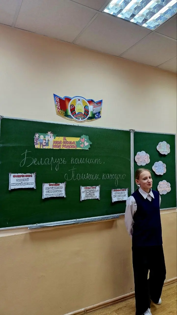 16.04 в нашем 7"А" классе прошел очень важный час общения на тему "Я. Моя семья. Моя Родина". Мы говорили о проекте "Беларусь помнит. Помним каждого" и вспоминали героев Великой Отечественной войны, особенно пионеров-героев, которые были ненамного старше нас. Еще мы перечислили главные памятники нашей страны, которые напоминают нам о той страшной войне. В итоге мы поняли: память нужна нам сейчас как никогда, чтобы никто и никогда не забыл, какой ценой завоеван мир