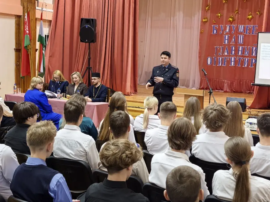 В рамках встречи старшеклассники вместе с Заваличем А. С., представителем департамента охраны МВД Республики Беларусь коснулись вопросов профилактики терроризма и экстремизма, с Лебедевой И. С., помощником прокурора Борисовского района правил общения в сети и ответственности за репосты, комментарии, оказание поддержки в популяризации канала "лайками", учились критически относиться к информации.