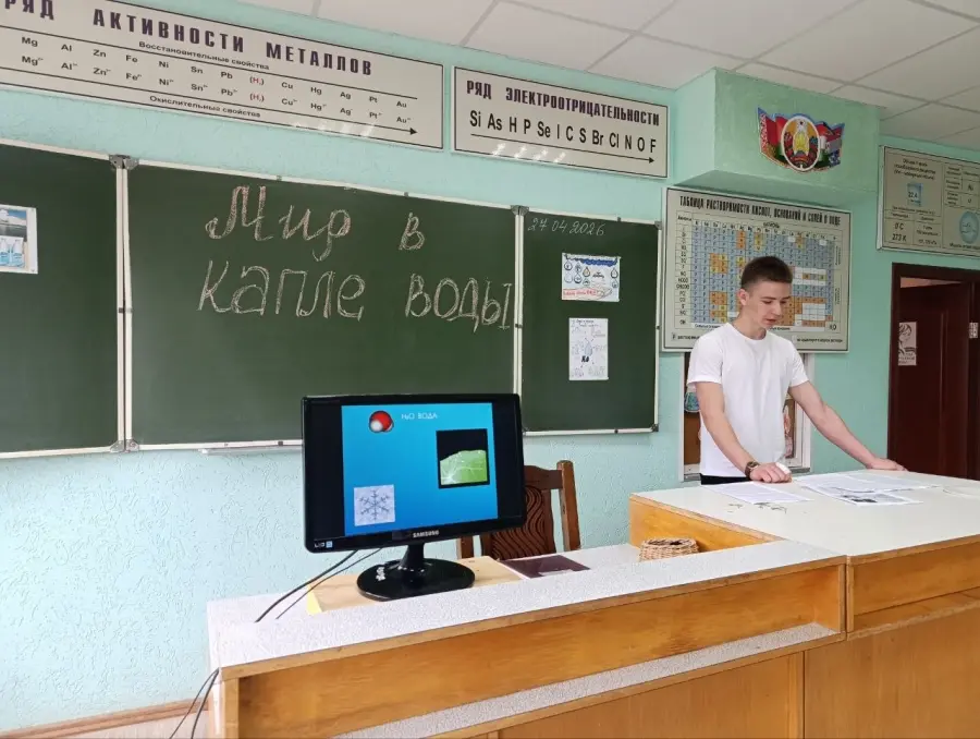 В рамках предметной недели истории, географии, биологии и химии с учащимися 10 "Б" класса прошла дискуссия "Мир в капле воды". Обсудили значение воды в жизни каждого человека, вспомнили физические и химические свойства. Узнали много новых фактов, например, что вода имеет "память", может менять строение молекулы от плохих и добрых слов. Дискуссия получилась оживлённой и информативной.