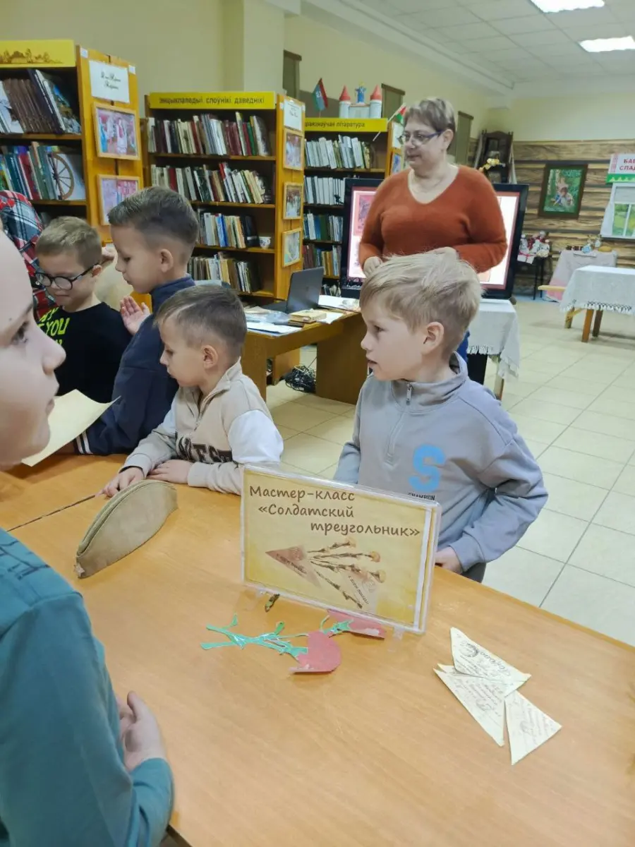 Ребята прошли мастер-класс "Солдатский треугольник" Посетили выставки художников и вышивки