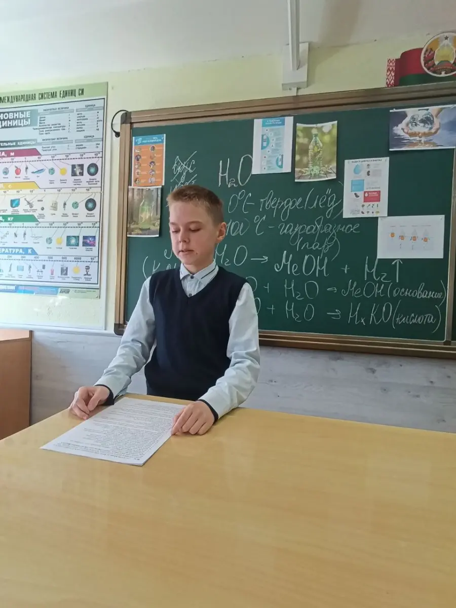 Научный фестиваль «Мир в капле воды» завершился на прошлой неделе. В рамках программы в 7 «Б» классе был проведён урок о воде. Учащиеся узнали о воде с химической точки зрения и обновили свои ранее полученные знания. Ребята подготовили 100 интересных фактов о воде. Урок прошёл интересно и познавательно.