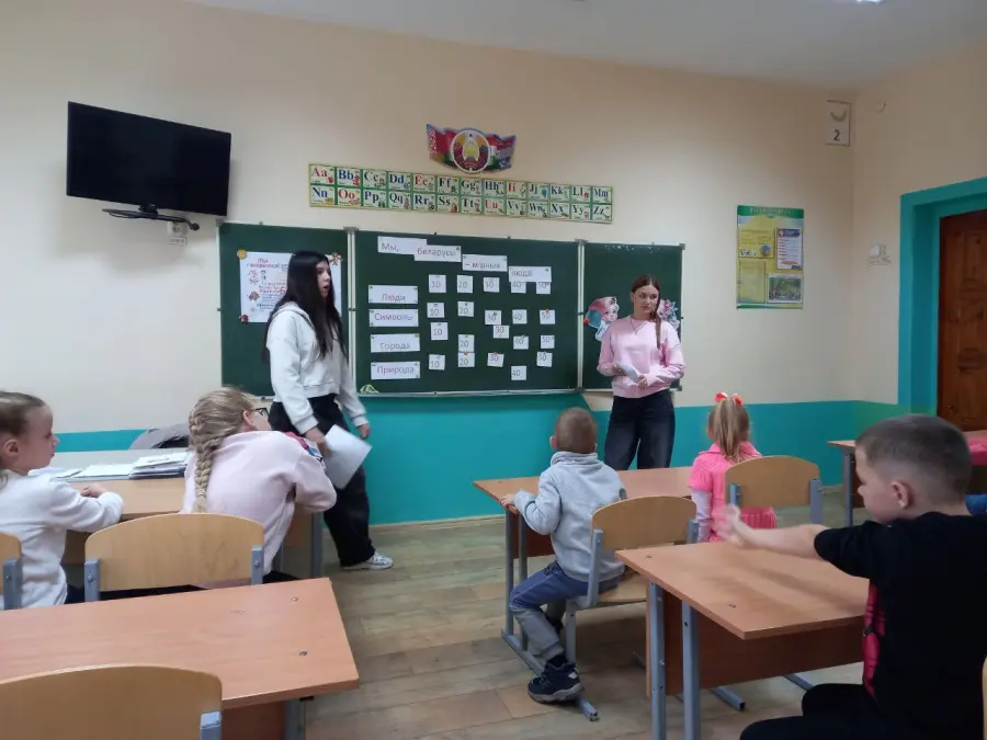В рамках шестого школьного дня актив 9б класса провел познавательную игру для первоклассников "Мы, беларусы - мiрныя людзi"