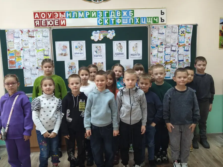 В рамках шестого школьного дня для учащихся 1-х классов проведена игра-викторина "Профессии наших родителей". Дети на занятии продолжили знакомство с различными профессиями. Дети получили удовольствие и новые впечатления во время игр. Рассматривали иллюстрации на тему "Профессии", разгадывали загадки. Активно определяли по предмету профессию, играли в игру "Доскажи словечко".