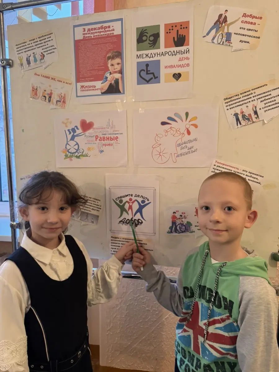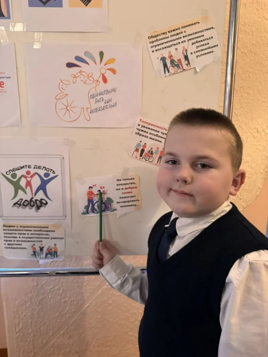 Ребята группы продленного дня также поговорили о том, что есть рядом с нами люди, которые ограничены в каких-то возможностях, и они очень нуждаются в нашей помощи, заботе и любви. Напомнили и другим о важности простого человеческого участия. Доброта творит чудеса!