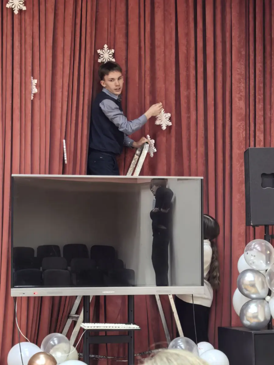 Каждый класс и все взрослые стараются порадовать новогодним оформлением окружающих. Сегодня у нас появился «воздушный вернисаж «С Новым годом и Рождеством!», который оформили Ржеутская Мария Николаевна и Ровина Наталья Павловна