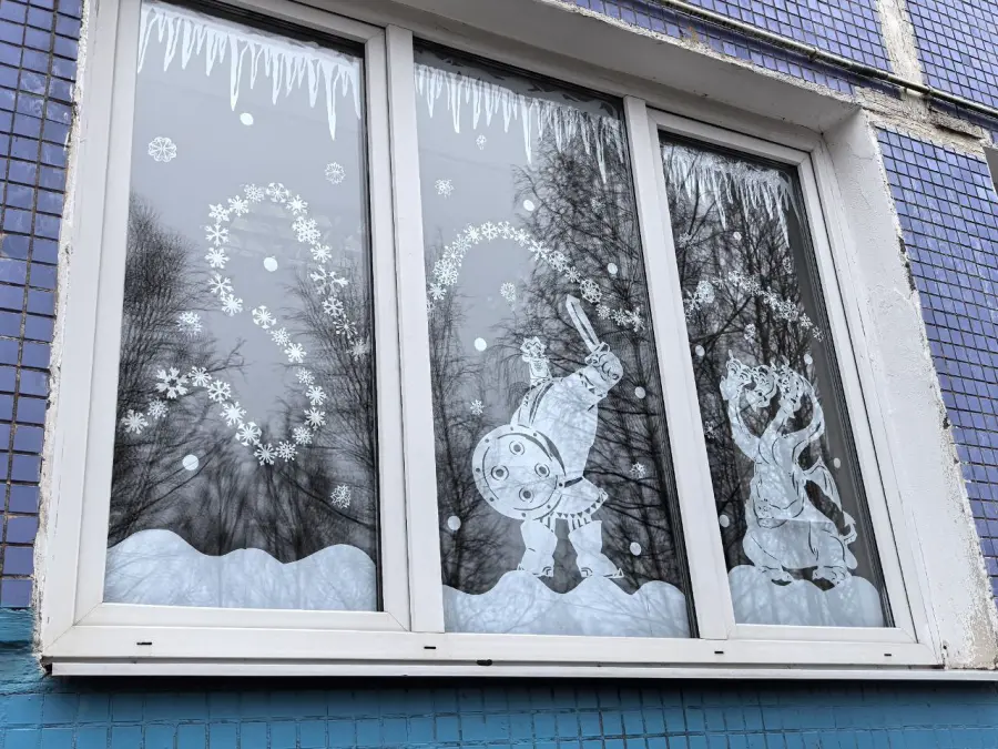 Наша школьная сказка ажурными узорами на окнах становится всё интереснее и интереснее...