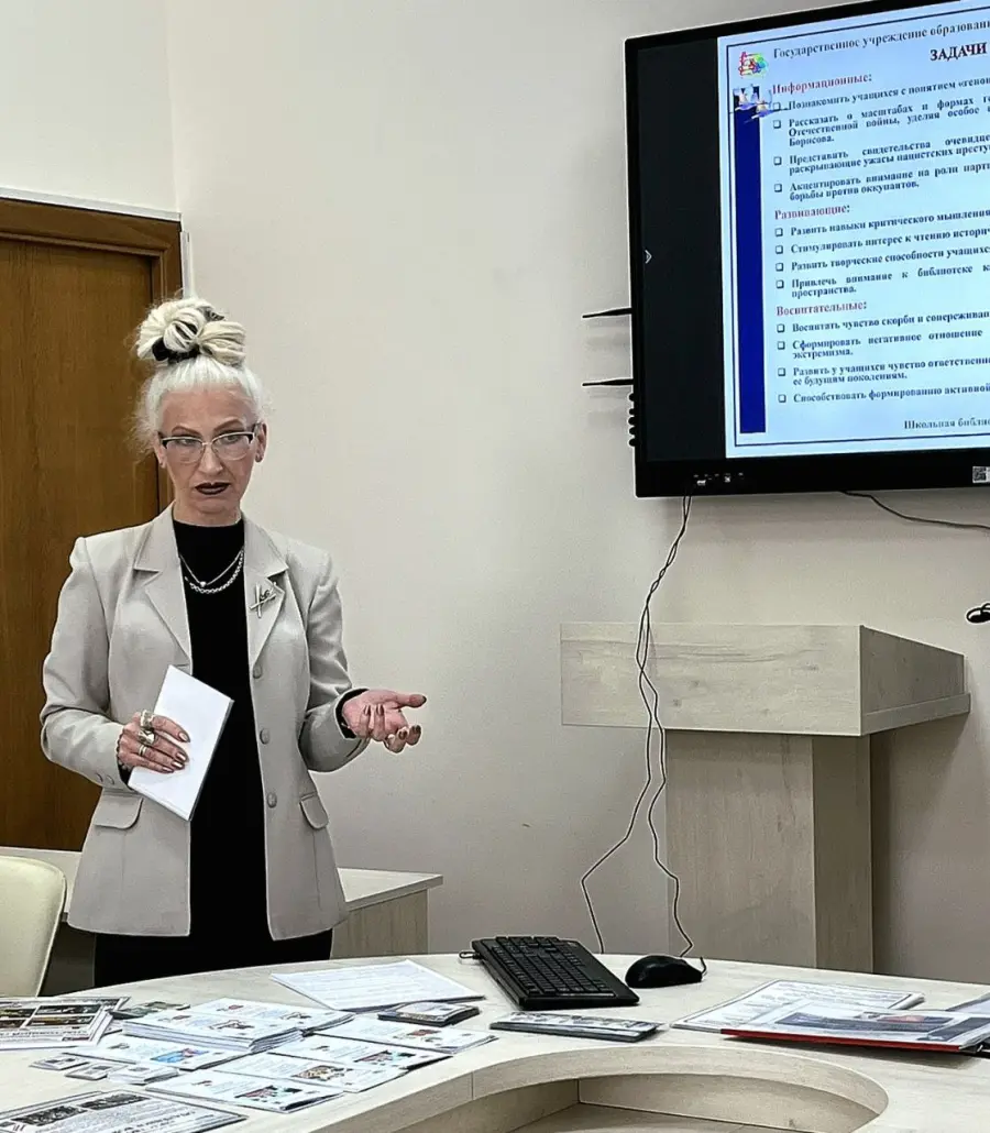 Заведующий школьной библиотеки "Читай-Град" ГУО "Средняя школа 24 г. Борисова", Яунишкене Светлана Алексеевна, представила на семинаре интерактивный библиотечный проект "Память, не знавшая забвения: Геноцид белорусского народа в годы Великой Отечественной войны".