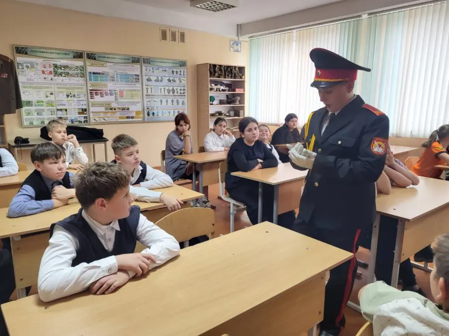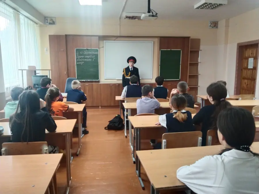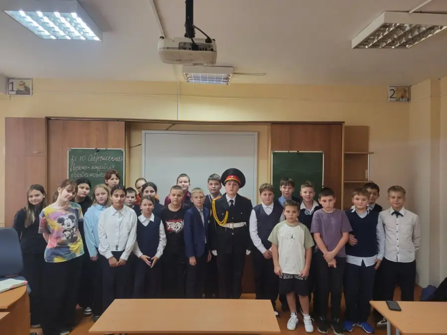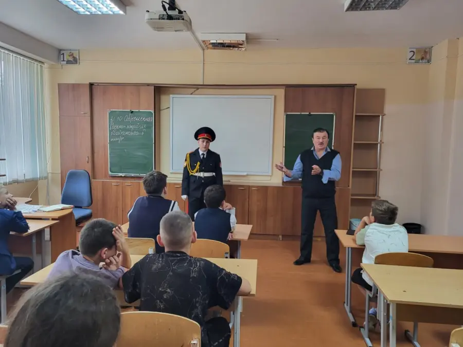 Арсений поделился с будущими выпускниками своим опытом поступления в кадетское училище, подробно рассказал об особенностях учёбы, распорядке дня, дисциплине и тех возможностях, которые открываются перед кадетами. Ребята с большим интересом слушали его рассказ, задавали вопросы о военной подготовке, спортивных занятиях и жизни в коллективе.