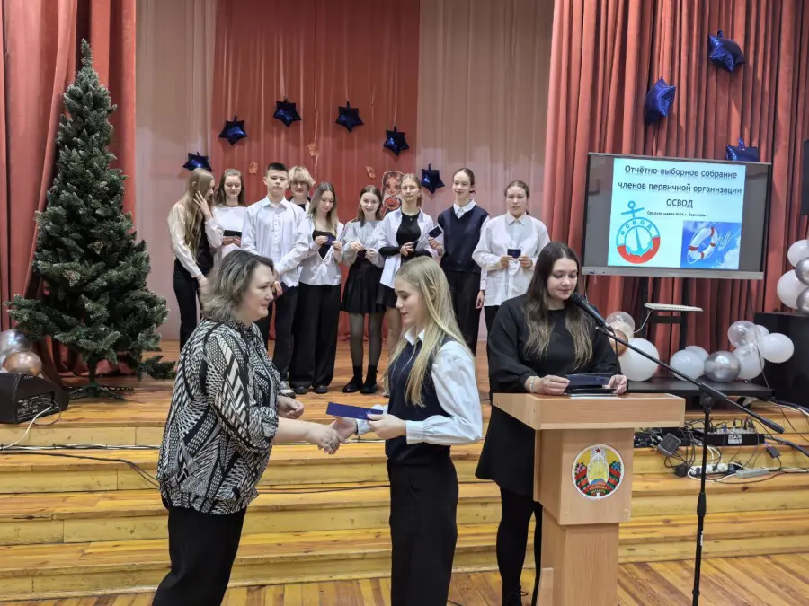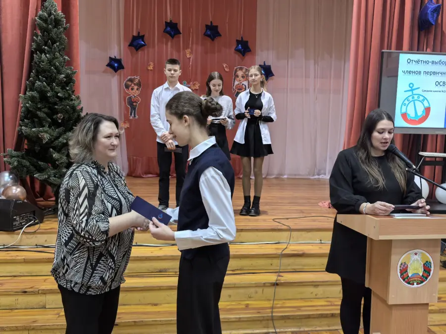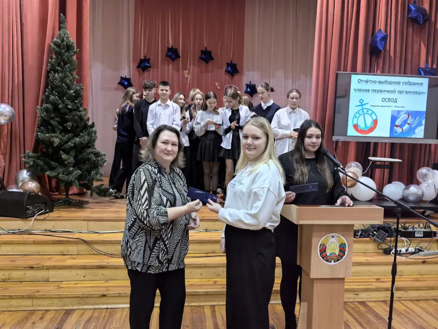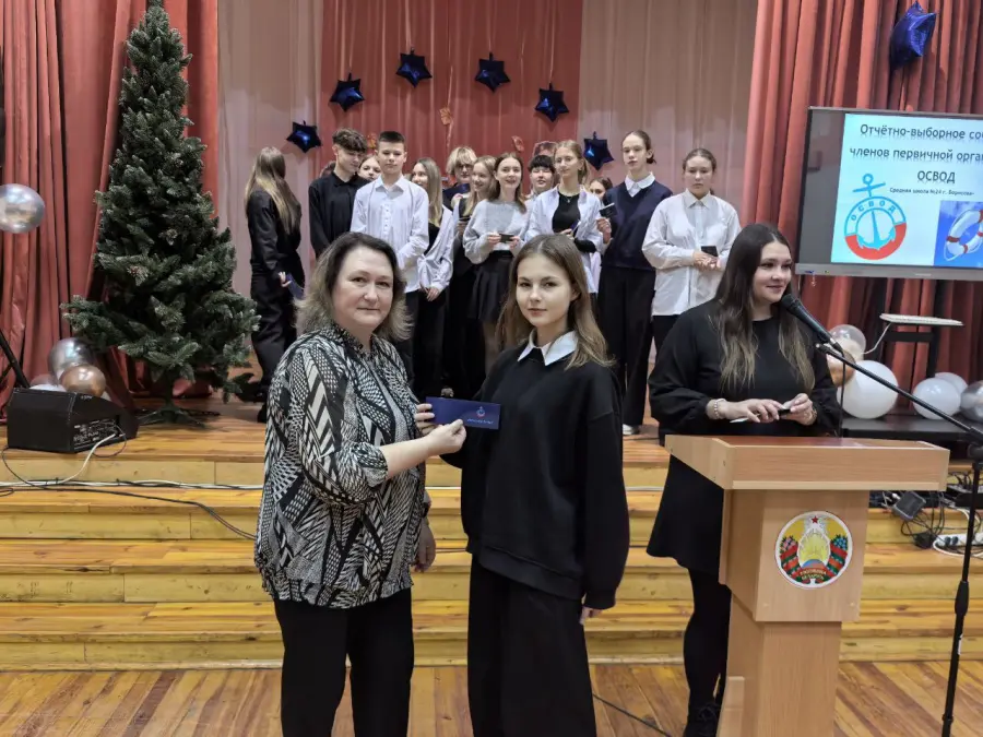 Вместе с Вайтюховской Натальей Михайловной, вновь избранным председателем первичной организации ОСВОД 24СШ, были вручены членские билеты ОСВОД 42 учащимся.