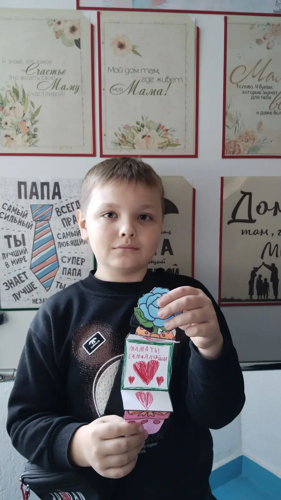Не обошлось у нас на занятиях и без рукотворных подарков. Все желающие сделали для своих мамочек милые открыточки, в которых написали самые важные слова. А Алина и Арсений создали самые креативные открытки для всех мам.