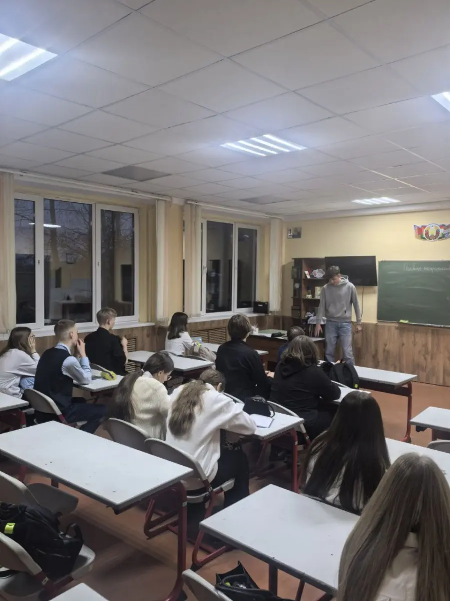17 ноября 2025 нашу школу посетил Барткевич Арсений с профориентационной работой и рассказал о условиях поступления в БГУ.