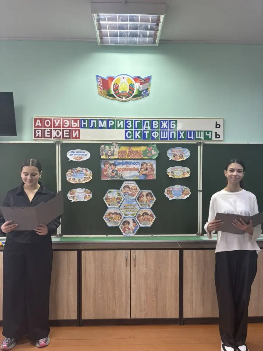 16 апреля 2026 года в ГУО «Средняя школа № 24 г. Борисова» в рамках программы наставничества «Шефская вертикаль» учащиеся 8 «Б» класса провели для ребят 4 «Д» класса тематическое занятие под названием «Я. Моя семья. Моя Родина: конфликтность и дружелюбие».