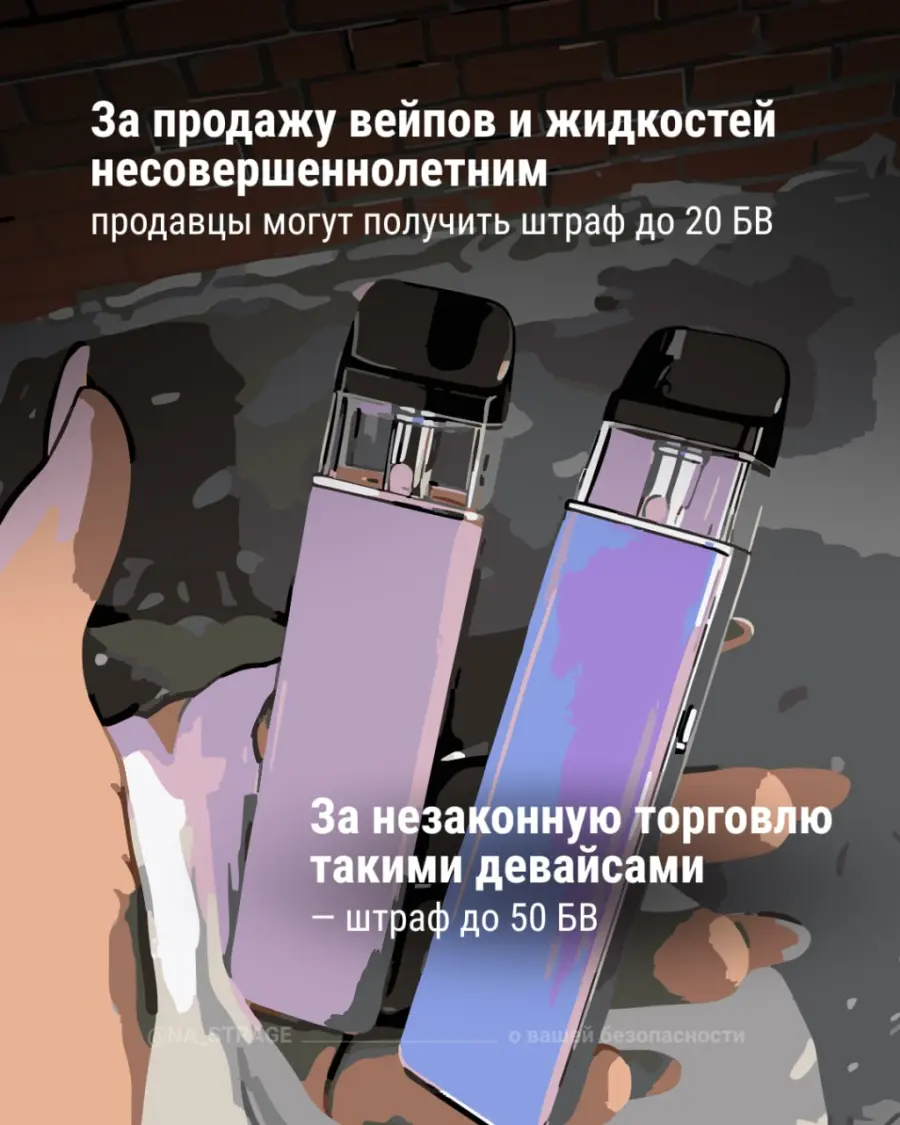 За продажу вейпов и жидкостей несовершеннолетним продавцы могут получить штраф до 20 базовых величин, а незаконная торговля такими девайсами может повлечь штраф до 50 базовых величин.