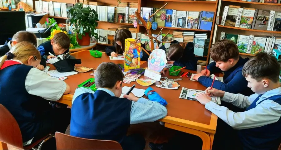 На переменах пространство школьной библиотеки превращалось в арт-площадку. Ребята раскрашивали пасхальные яйца, используя самые разные узоры - от традиционных орнаментов до современных фантазийных мотивов. Рисуя и слушая светлые пасхальные песни и напевы, велись душевные беседы о истории праздника, вспоминали народные традиции и правила празднования.