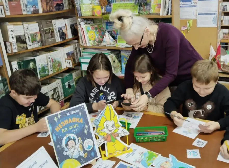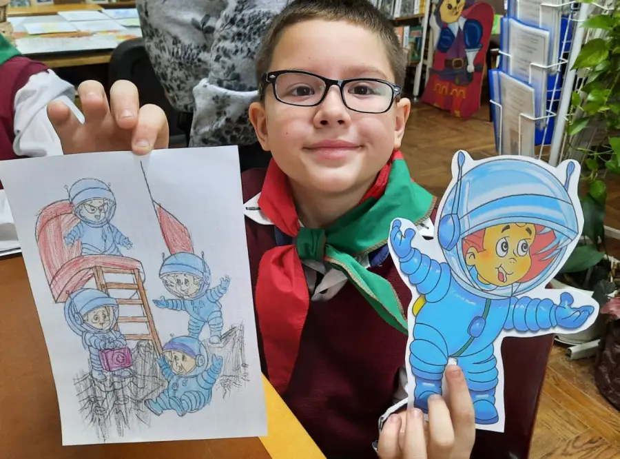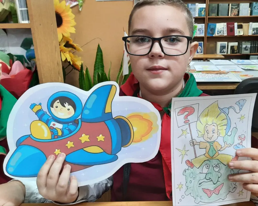 В этот день школьная библиотека превратилась в станцию "В Солнечном царстве, в космическом государстве...". Команды юных исследователей узнали интересные факты о космосе, о планетах Солнечной системы, о жизни космонавтов, о космических полётах человечества. Узнали о том, что известный им Незнайка так же отправился в космическое путешествие на Луну. Познакомились с книгой Н.Носова "Незнайка на Луне".Посмотрели отрывки из мультфильма " Незнайка на Луне".Раскрасили рисунки про необычное путешествие Незнайки, его друга Пончика на Луне и их приключениях.