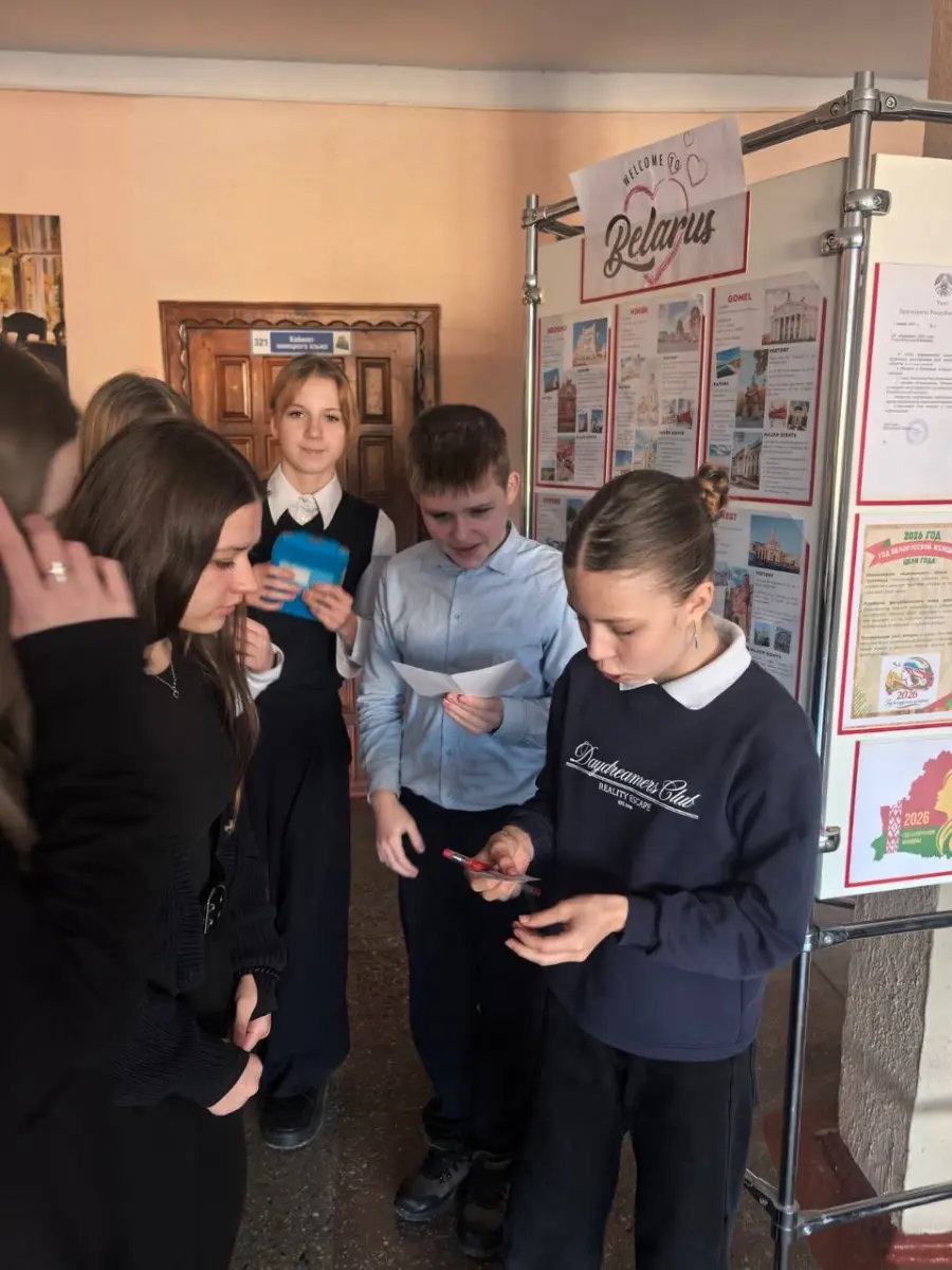 17 февраля 2026 года 7-е классы в рамках предметной недели поучаствовали в квест игре "Маршрут построен". Каждый класс делился на 2 команды. Затем ребята изучали инструкцию маршрута к карте Беларуси, проходили этот путь в школе и выполняли задания. В итоге дети вспомнили слова, обозначающие направления на английском языке, а также смогли самостоятельно определить верный путь и назвать достопримечательности Беларуси в разных областях.