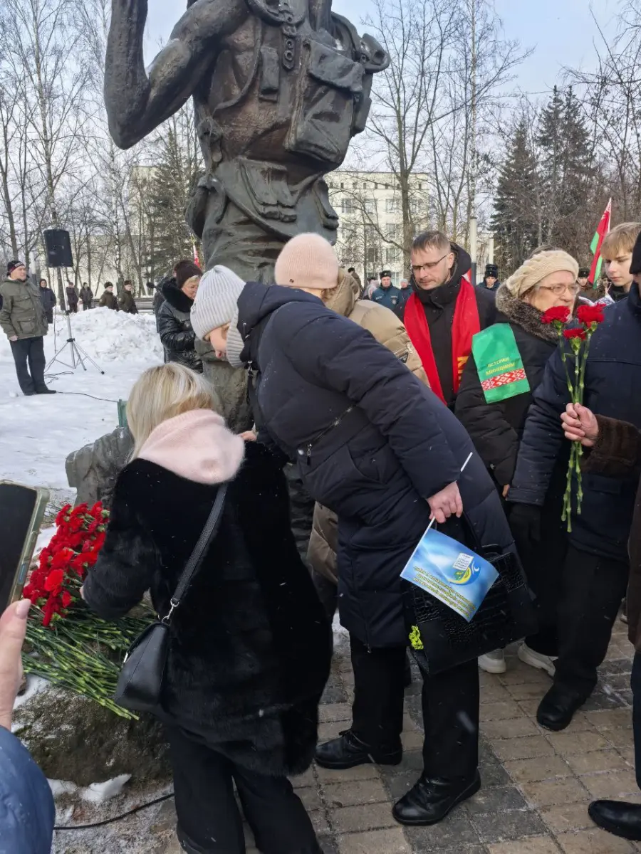 15.02.2026 члены профсоюза ГУО "Средняя школа №24 г. Борисова" участвовали в митинге, посвященному 37 годовщине вывода войск из Афганистана.