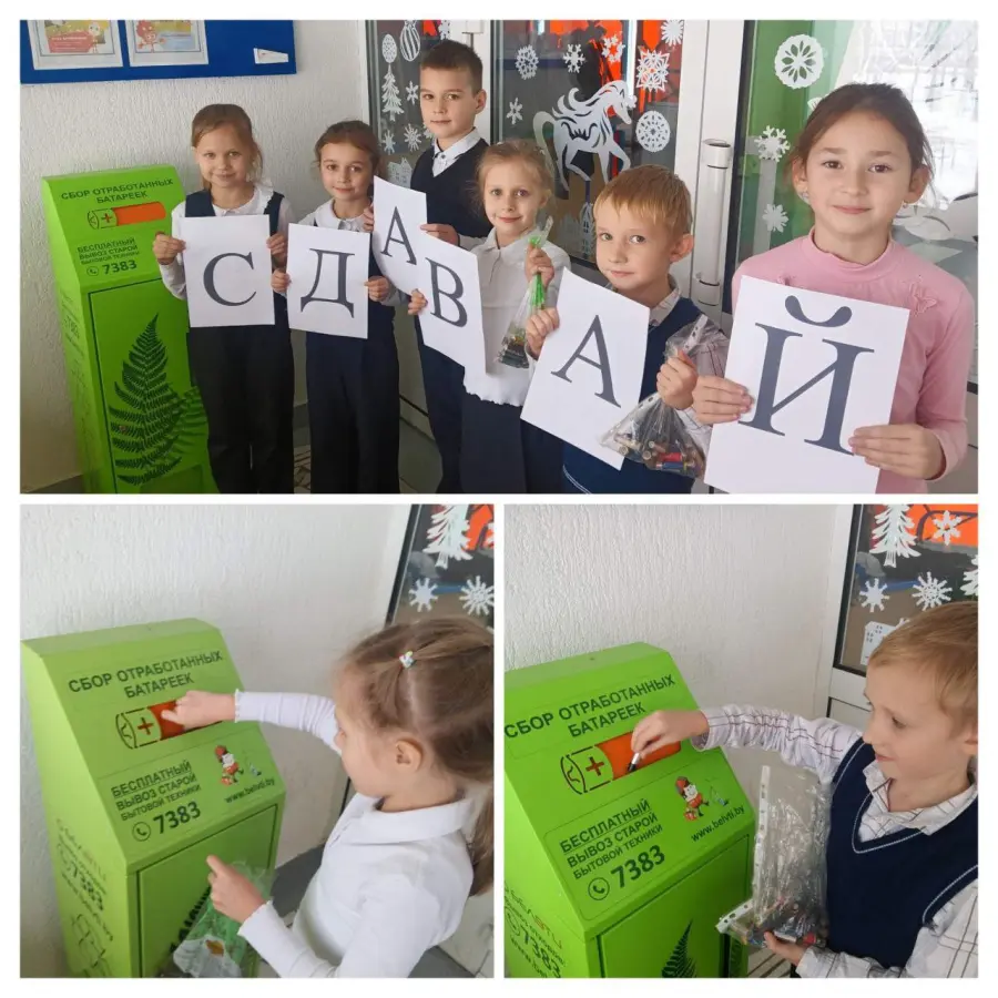 Ребята 2Б класса принимают активное участие в районном этапе экологической акции "Сдавай! " по сбору отработанных батареек в рамках информационно-образовательной акции "Беларусь - энергоэффективная страна"