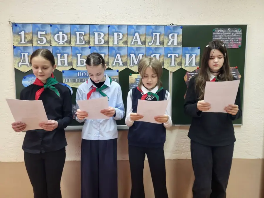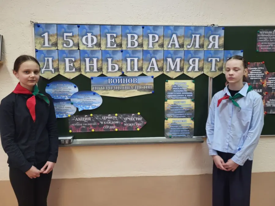 16 февраля в 6 «В» классе прошёл урок памяти «15 февраля — День памяти воинов‑интернационалистов», подготовленный "молодыми политиками" Житниковой Василисой, Драницей Ангелиной, Драницей Ульяной и Тороповой Ульяной.