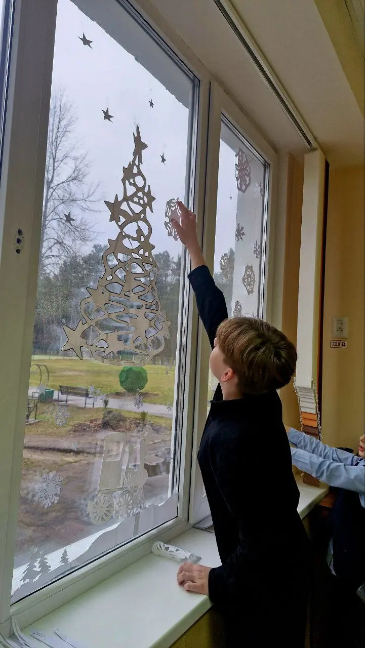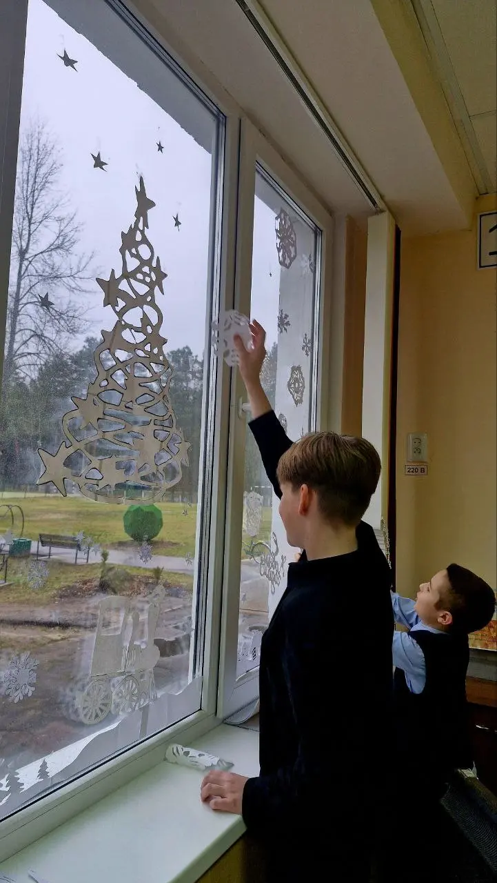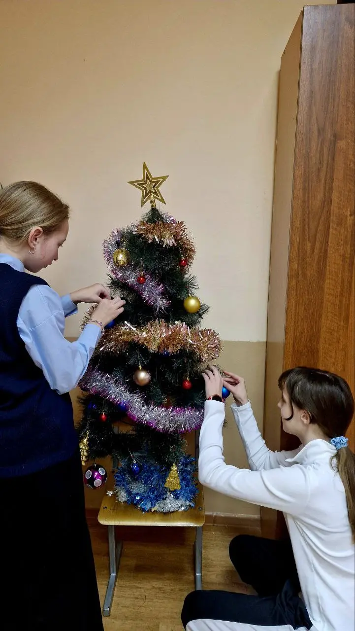 Работа закипела! Кто-то отвечал за оформление окон, создавая на стекле сказочные узоры из снежинок. Другие ребята украшали школьную елку яркими шарами и фигурками. Класс превратился в творческую мастерскую!