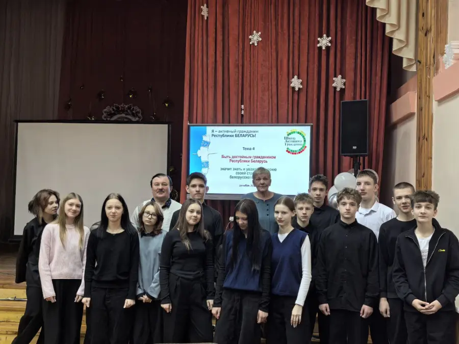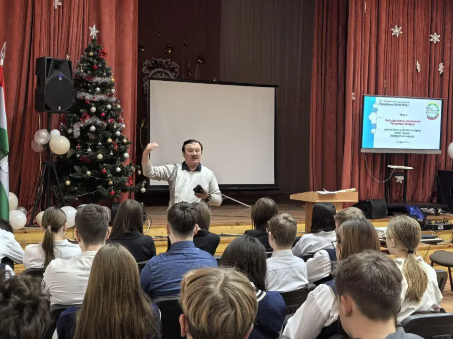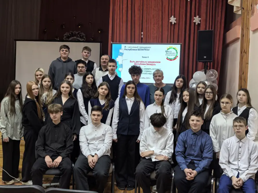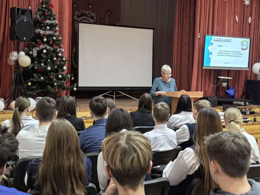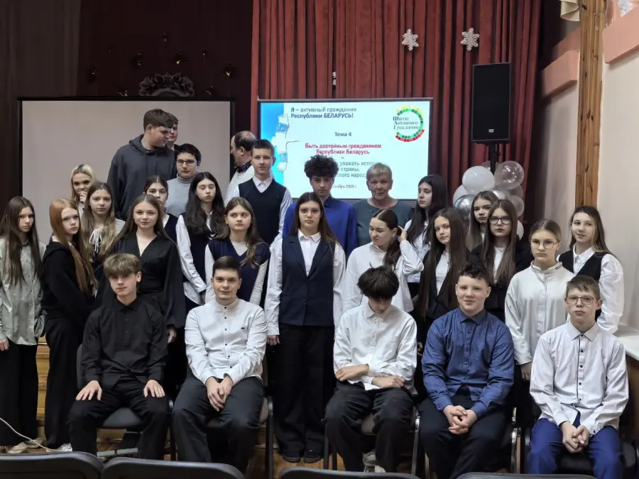 23.12.2025 состоялась диалоговая площадка для учащихся 9-х классов в рамках республиканского проекта «Школа Активного Гражданина» под девизом: «Быть достойным гражданином Республики Беларусь – значит знать и уважать историю своей страны, белорусского народа!»