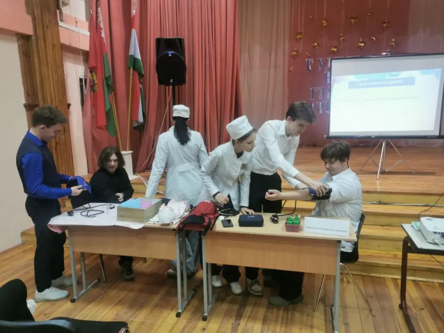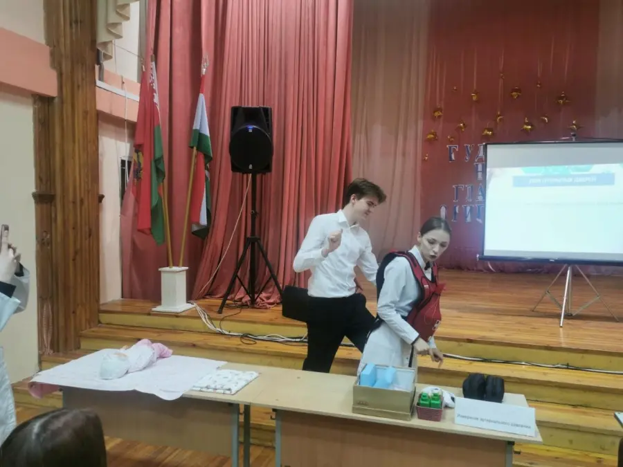 Старшеклассники смогли не только пообщаться со студентами ГУ "Борисовского медицинского колледжа", но и на практике попробовали закрепить полученные знания по оказанию первой медицинской помощи.